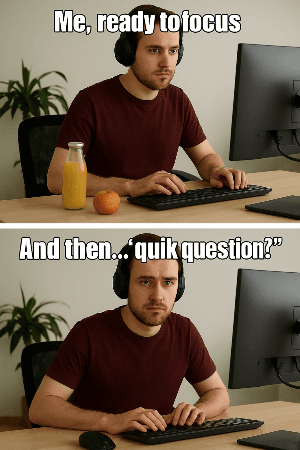 Like when you finally sit down to focus, and someone pings you with “quick question?” that turns into a 2-hour rabbit hole.Yeah… you’ve probably been there. 🫠